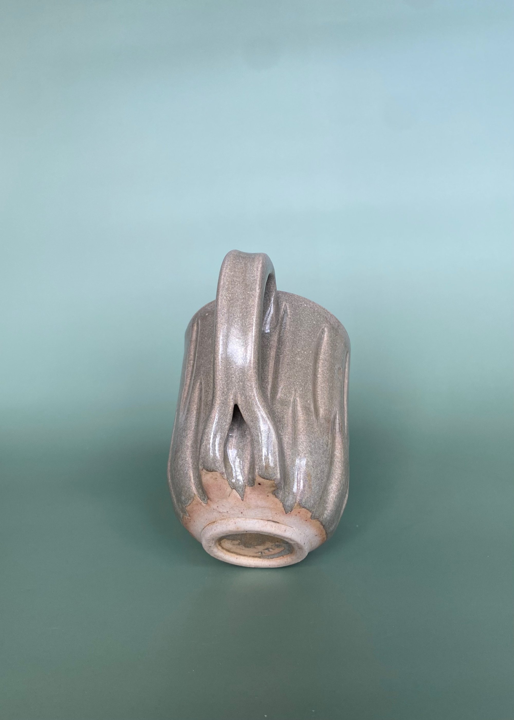 Hand-thrown, fluted mug with a fun split handle.